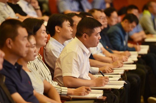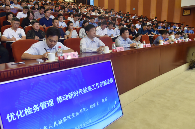 国家检察官学院四个业务培训班参训学员,最高检有关负责人和国家检察官学院全体教职工聆听报告。