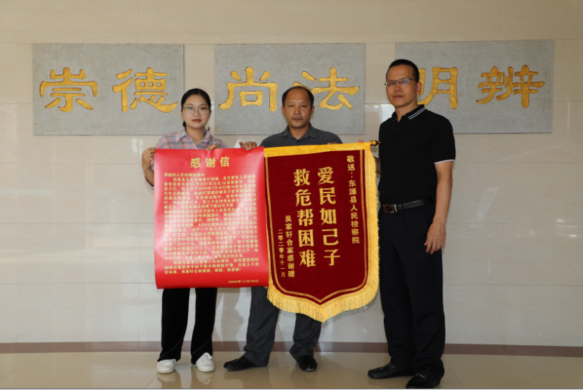 “十分感谢检察院,在我们最危难的时候伸出援助之手给予帮助,让我们度过艰难的时刻,真的谢谢……”。近日,由我院党组成员李鸿基副检察长办理的吴某某司法救助案、党组成员曾栋办理的潘某某司法救助案的两名被救助对象家属手捧锦旗和一封大大的感谢信专门来到我院,用一声声朴实的谢谢表达着对检察机关的感激之情。